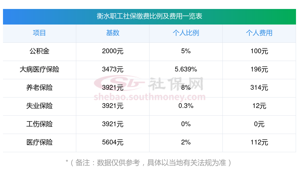 衡水2025年社保养老保险缴费标准是多少?下表是2025年衡水社保费用明细参考,新社通app-社保缴费查询工具提供的最新数据如下: