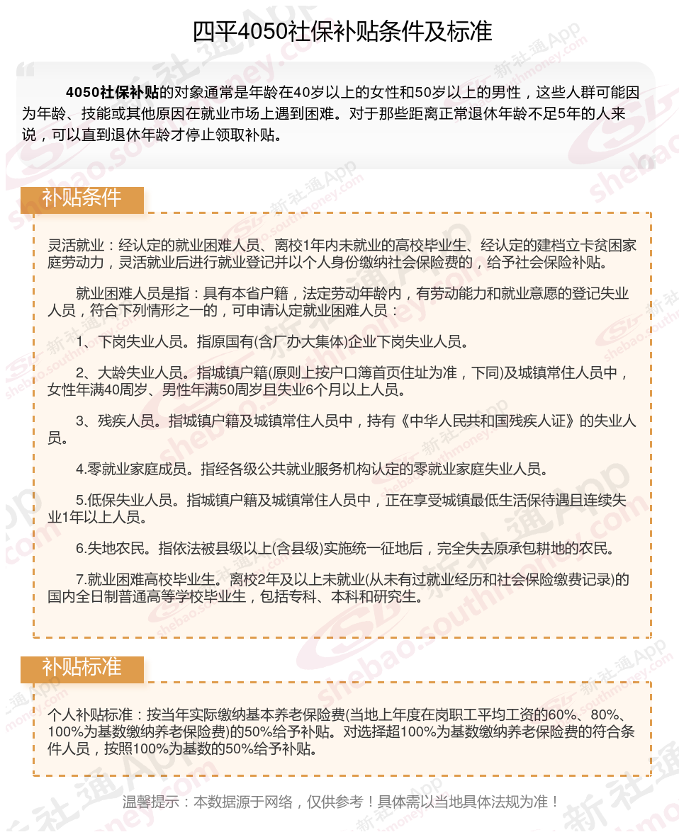 二、2025年四平4050社保补贴标准,最新领取条件来了