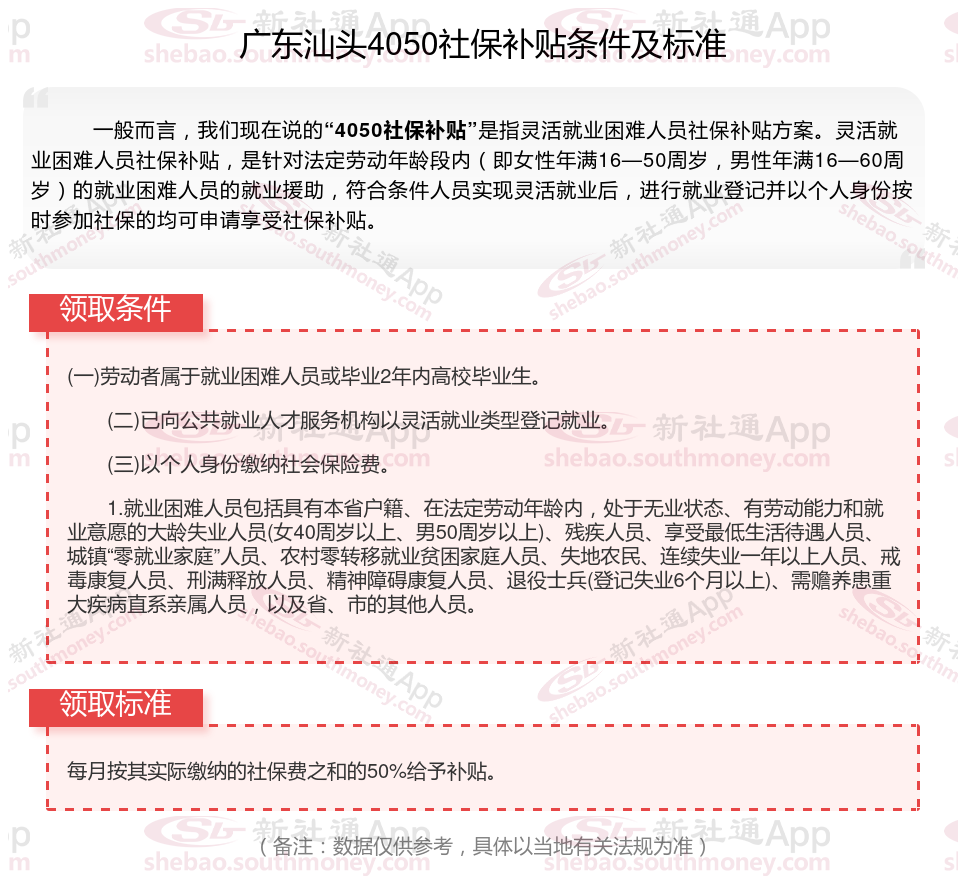 以上就是广东汕头4050灵活就业社保补贴的相关内容,欢迎关注新社通/下载新社通APP了解更多五险一金专业资讯。