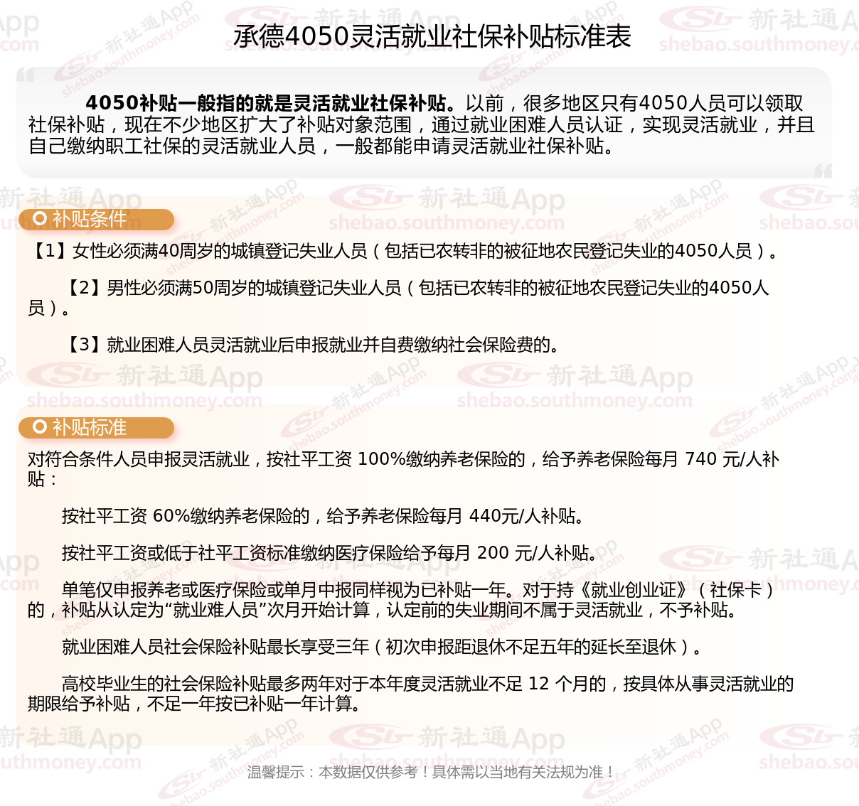 2025承德灵活就业4050社保补贴是一项面向特定年龄段的就业困难人群的社会保险补贴。