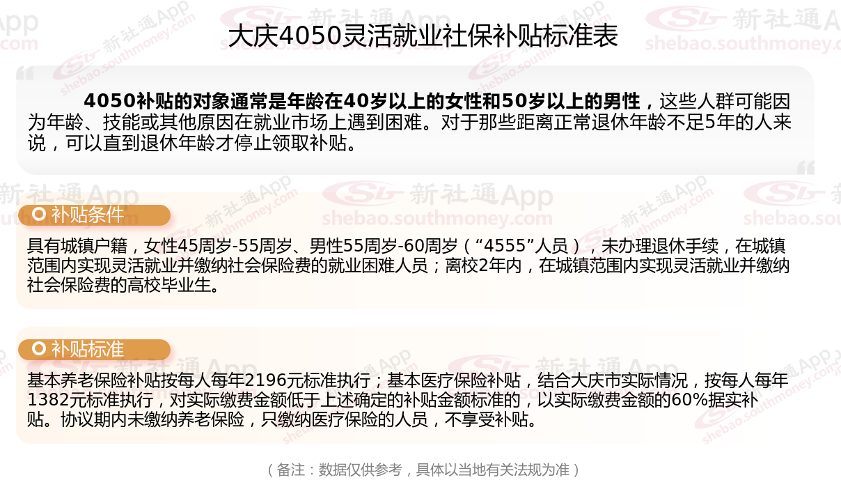 二、2025年大庆4050社保补贴标准及条件是什么?