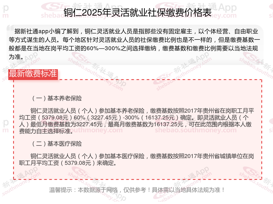二、2025年铜仁灵活就业社保缴费基数及比例最新消息
