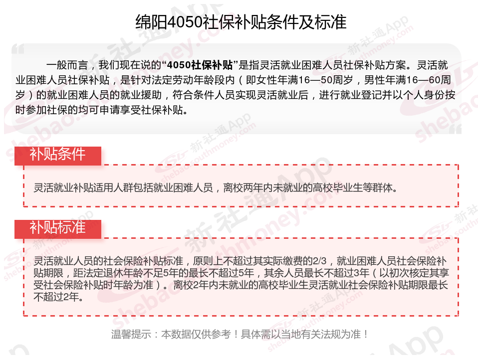 二、绵阳4050社保补贴标准及条件4050社保补贴,最新如下