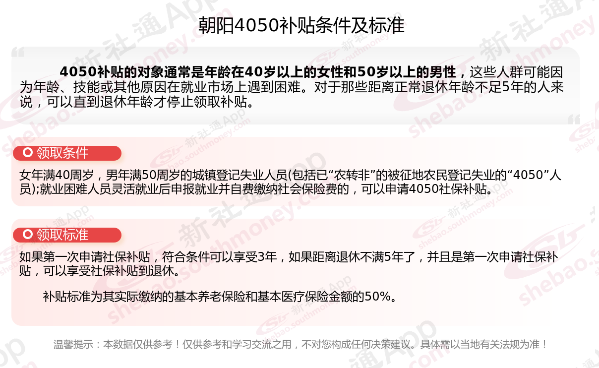 二、朝阳4050社保补贴标准及条件2025年最新消息