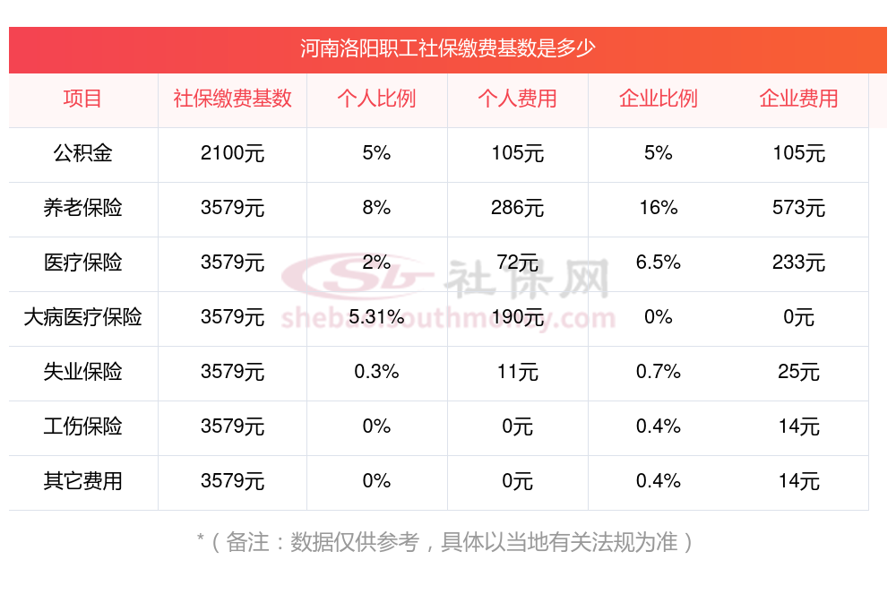 2025年河南洛阳社保缴费价格,2025年河南洛阳社保缴费多少钱?下表是2025年河南洛阳社保费用明细参考,新社通app-社保缴费查询工具提供的最新数据如下: