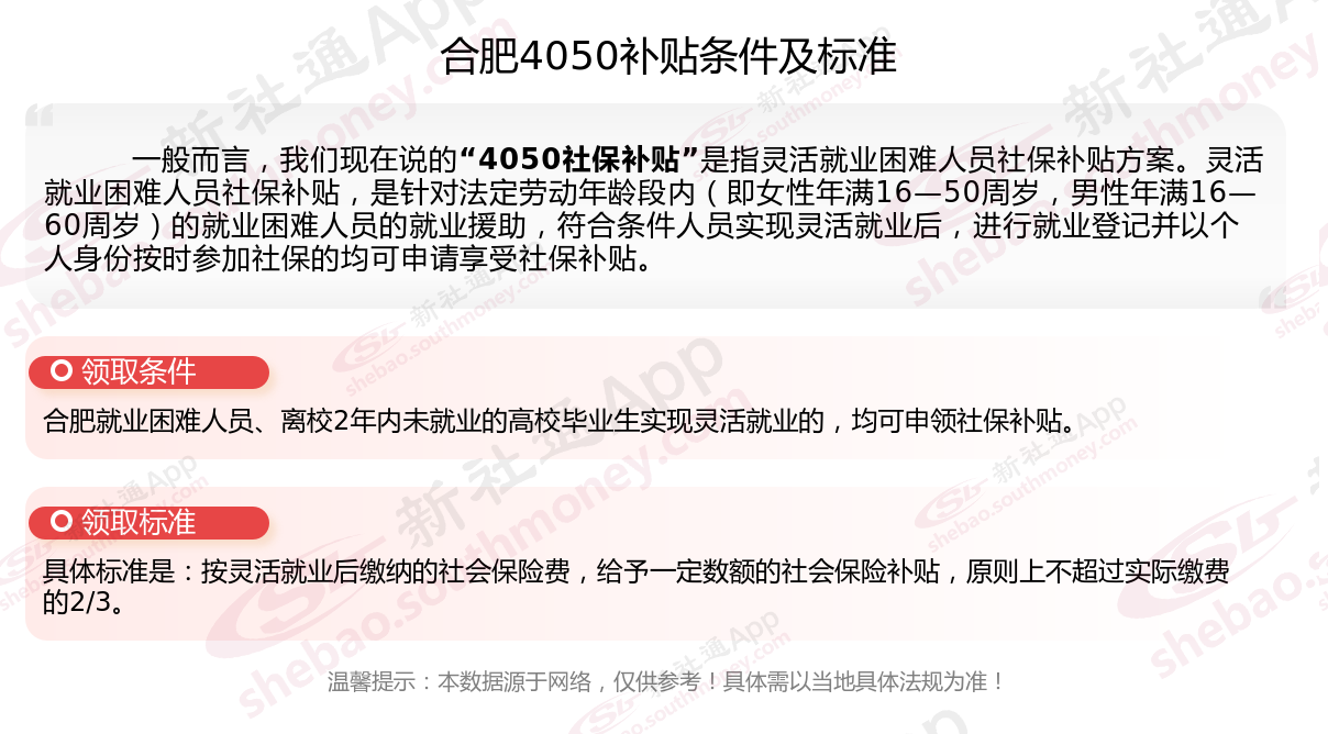一、合肥4050社保补贴标准及条件2025年最新消息
