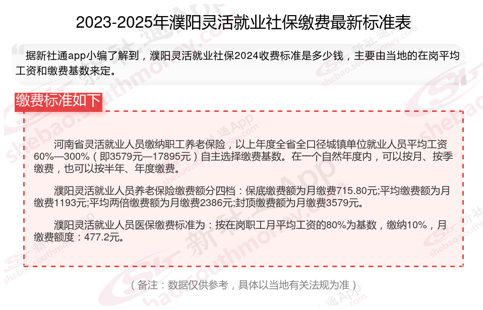 濮阳灵活就业人员的社保缴费标准是多少?根据新社通app-社保缴费查询工具提供的最新数据如下: