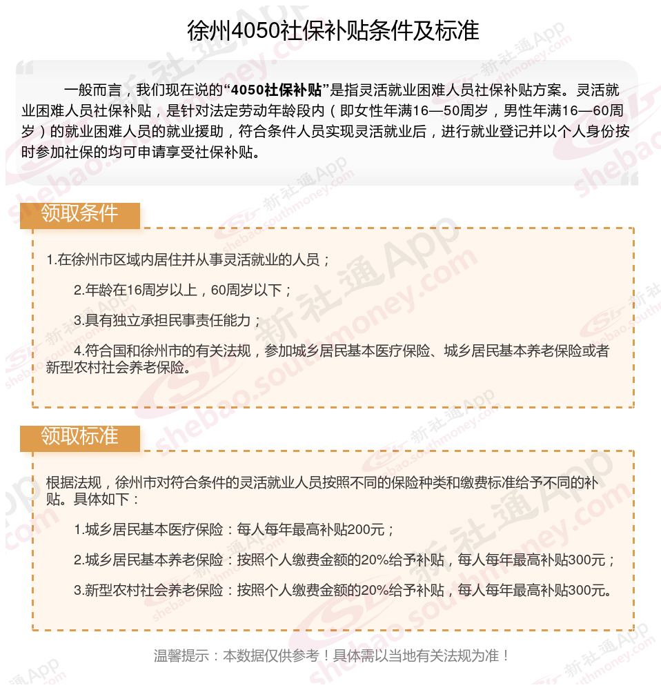 一、徐州灵活就业4050社保补贴标准和条件是什么?