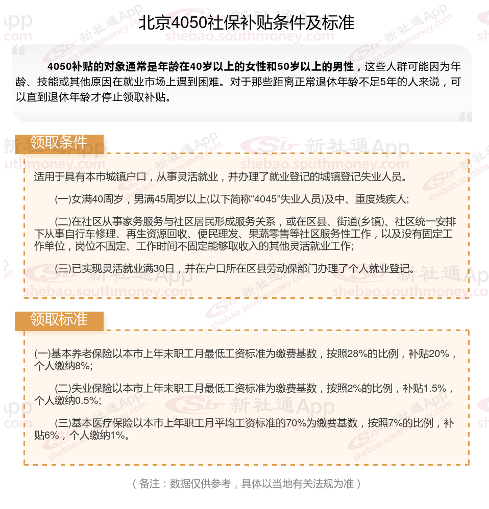 2025北京4050补贴主要针对的是年龄在40岁以上的女性和50岁以上的男性,这些人群通常因为年龄较大而面临就业困难。
