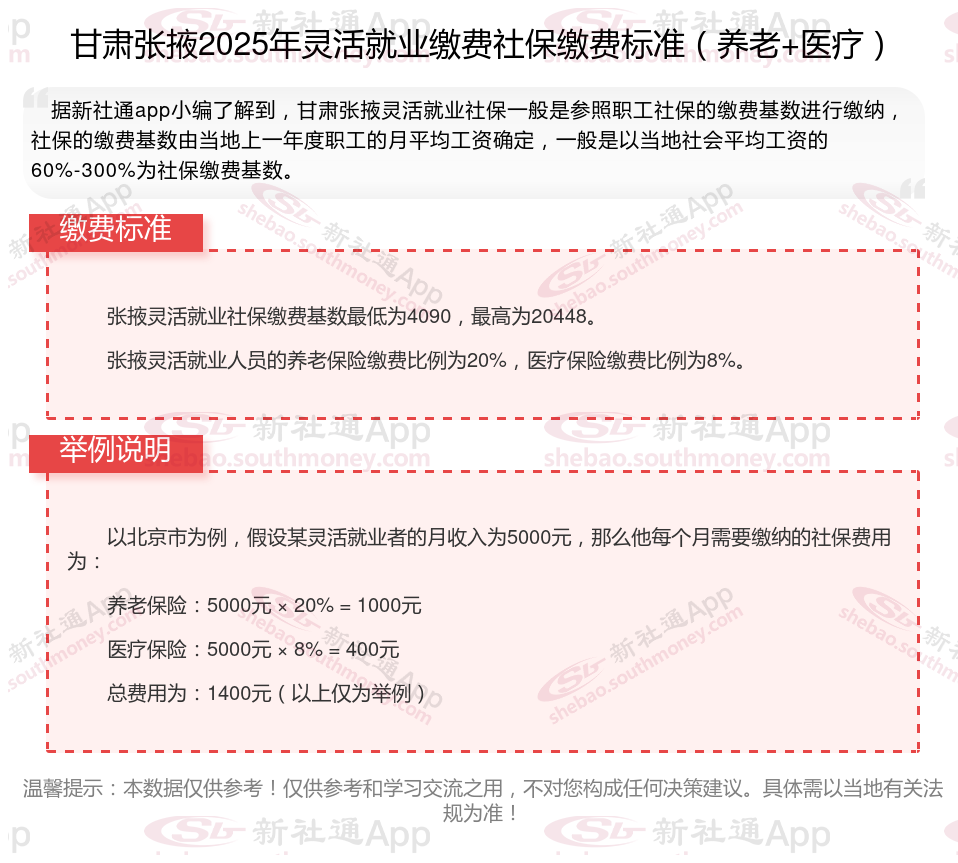 那么,个体户社保是多少钱一个月多少钱?根据新社通app-社保缴费查询工具提供的2025社保缴费标准详情数据: