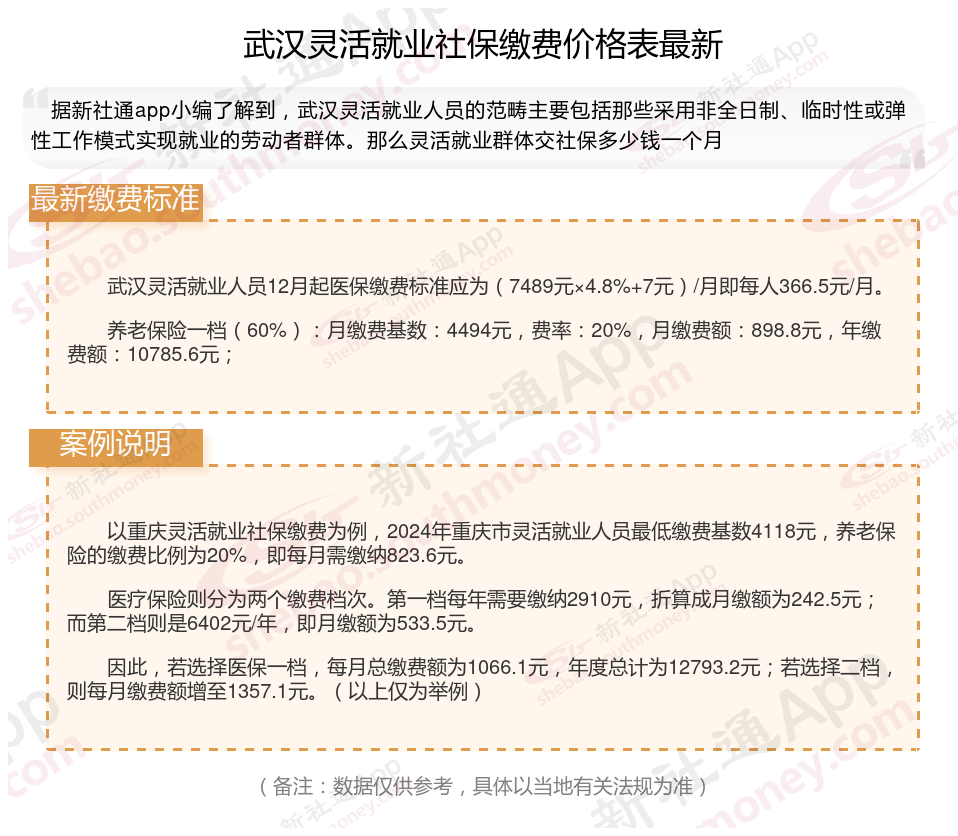 一、2025年武汉灵活就业社保缴费标准公布啦 武汉灵活就业社保多少钱一个月?