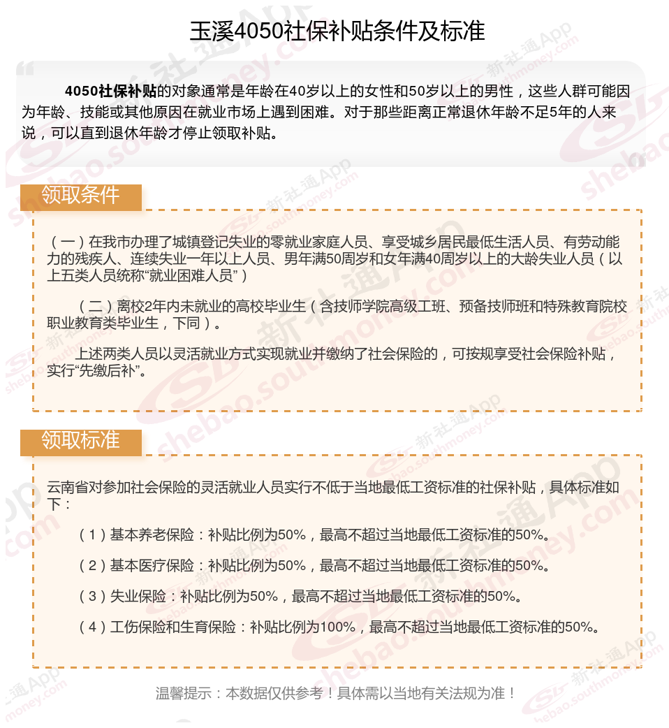 二、2025年玉溪4050社保补贴标准是多少?条件是什么?