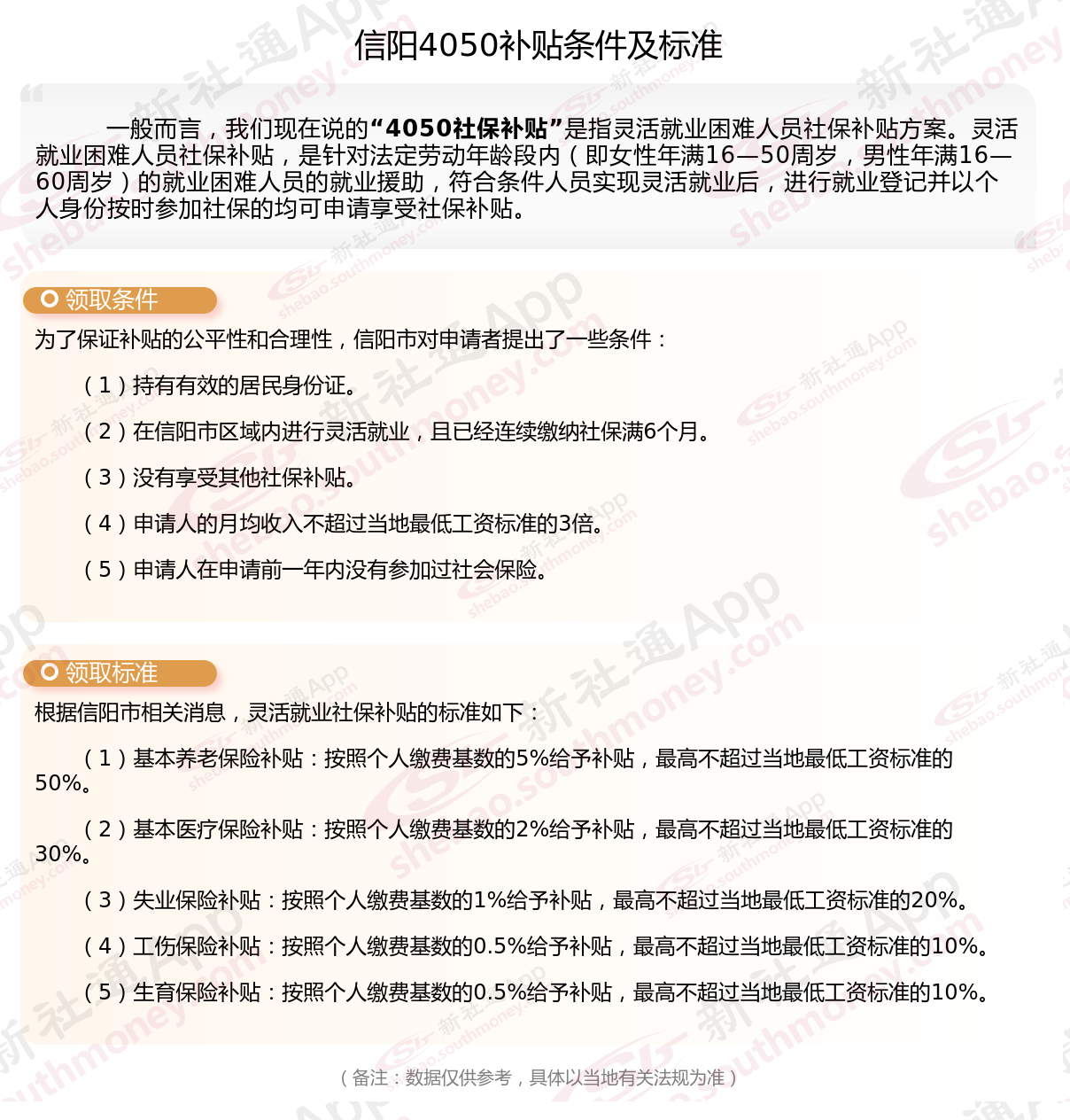 一、信阳4050社保补贴标准及条件2025年最新消息