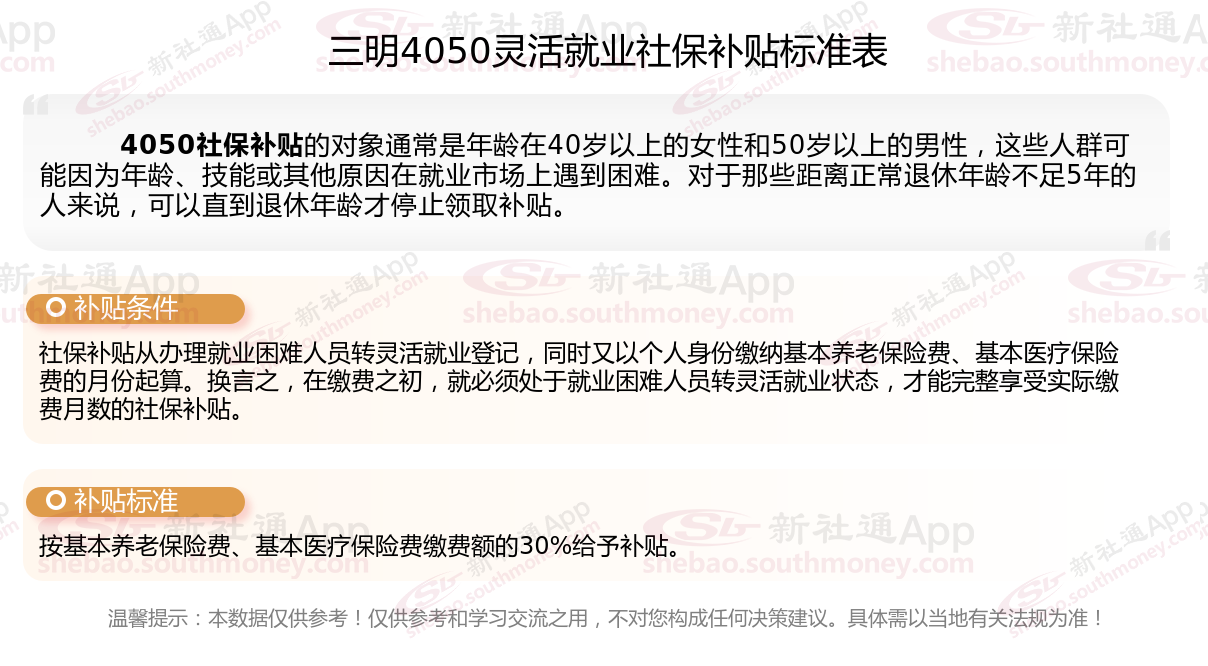 以上就是三明4050灵活就业社保补贴的相关内容,欢迎关注新社通/下载新社通APP了解更多五险一金专业资讯。