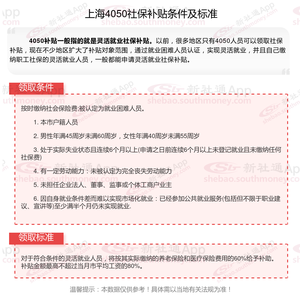 以上就是上海4050灵活就业社保补贴的相关内容,欢迎关注新社通/下载新社通APP了解更多五险一金专业资讯。
