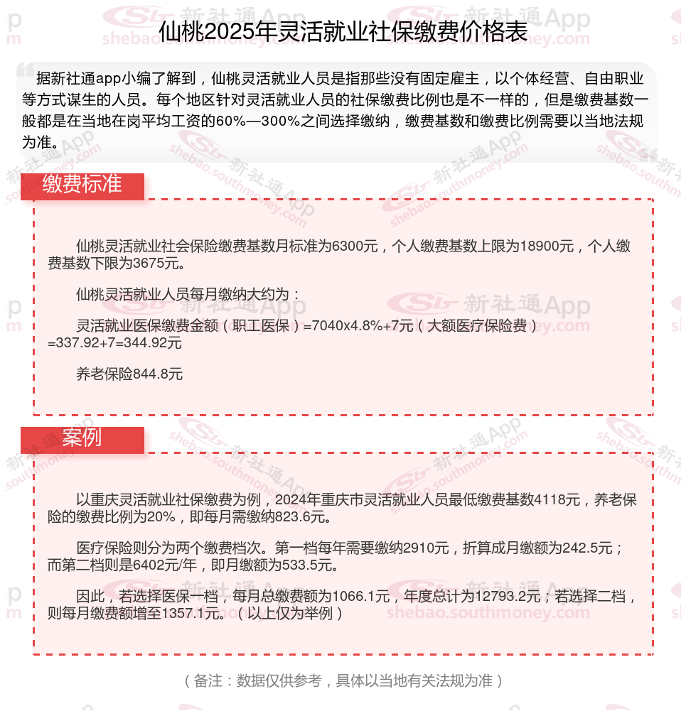 以上就是带来仙桃灵活就业社保缴费标准相关知识,内容供参考,希望对你有帮助,欢迎关注/下载新社通APP解锁更多社保专业资讯。