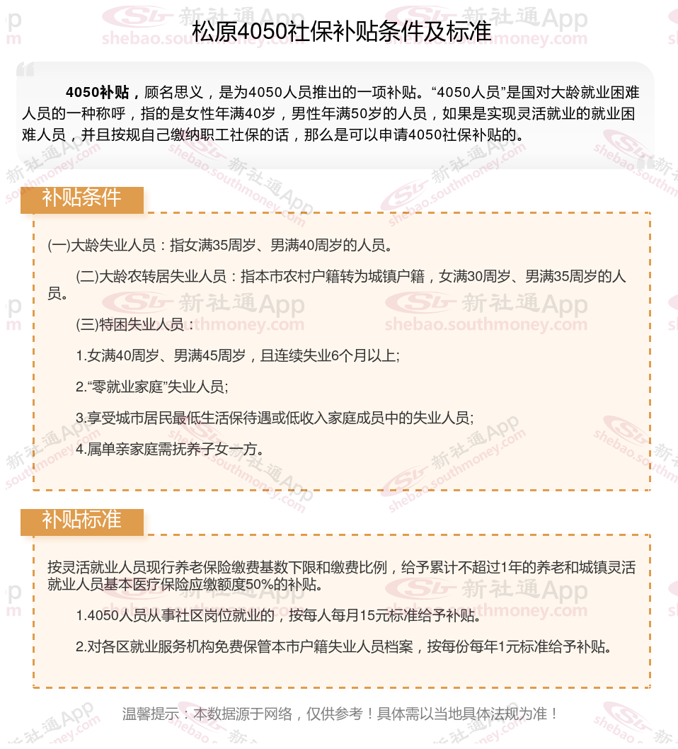 2025松原灵活就业4050社保补贴是一项面向特定年龄段的就业困难人群的社会保险补贴。