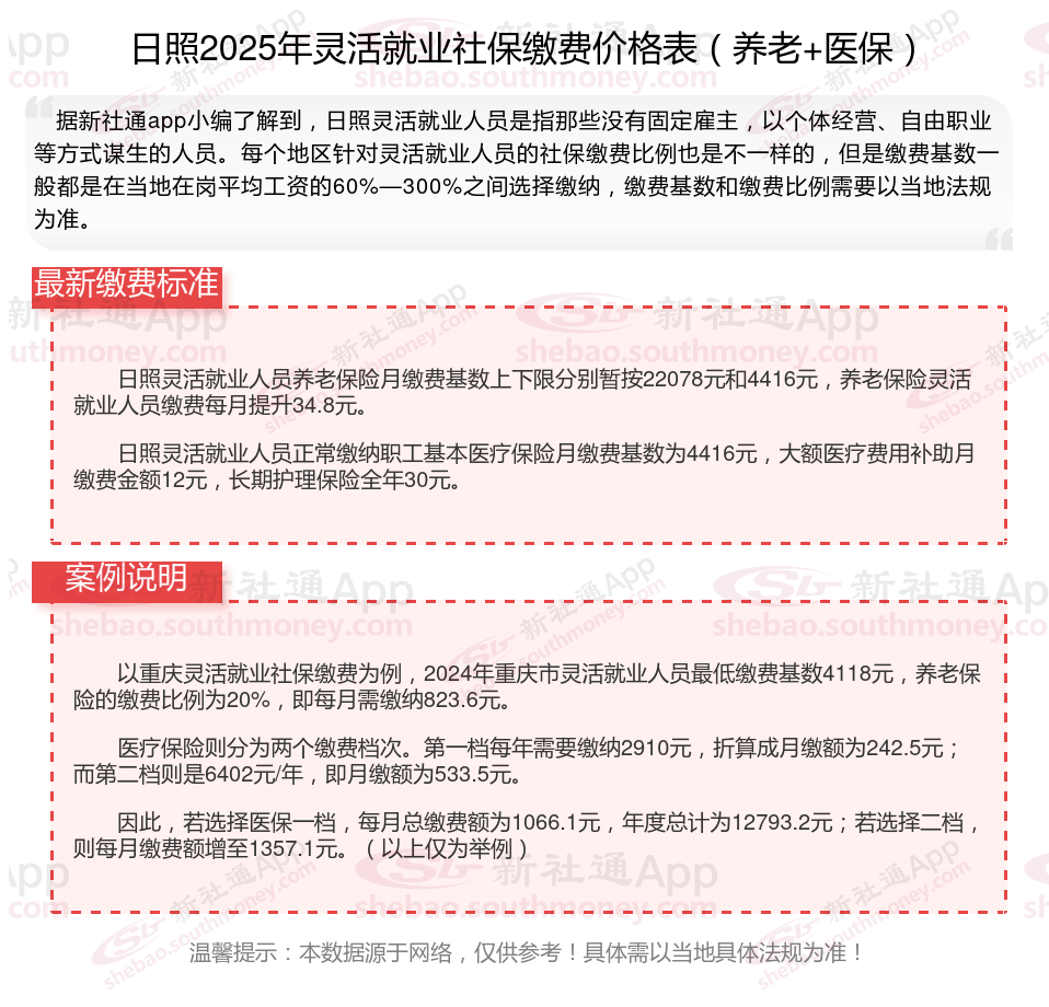 一、2025年日照灵活就业人员社保养老+医保缴费标准一年多少钱?