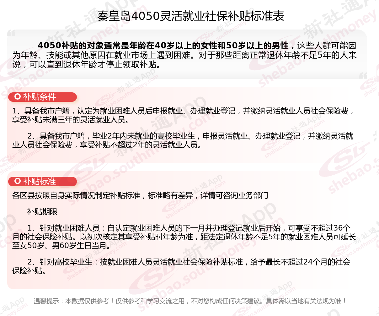 2025秦皇岛4050补贴主要针对的是年龄在40岁以上的女性和50岁以上的男性,这些人群通常因为年龄较大而面临就业困难。