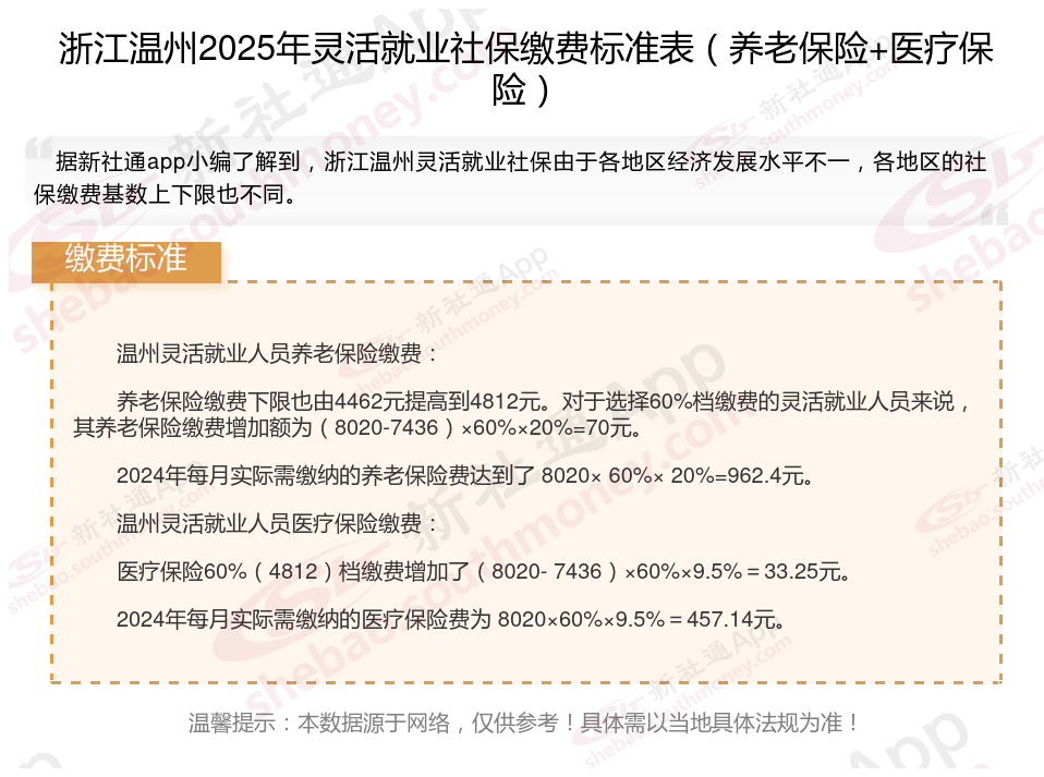 二、2025年浙江温州灵活就业社保缴费基数及比例最新消息