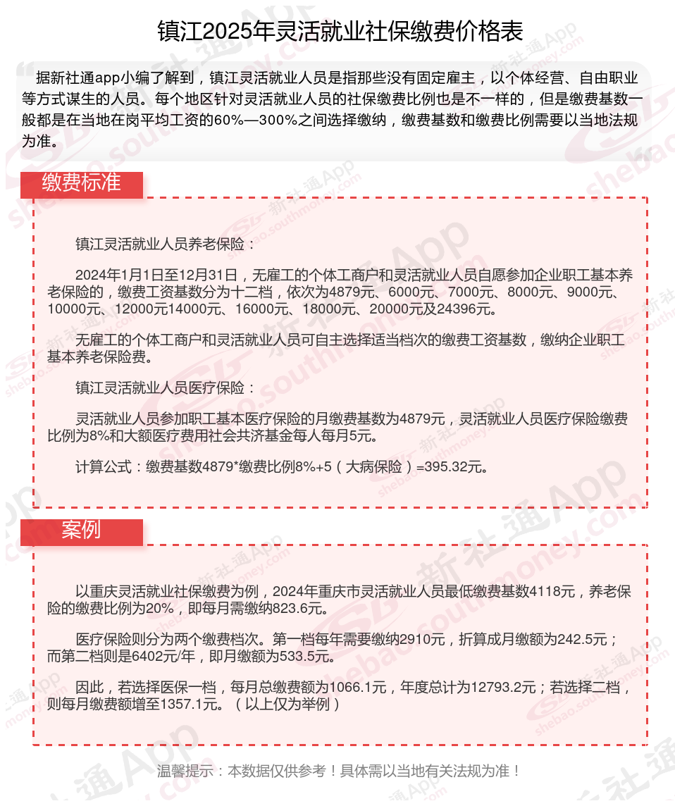 据新社通app数据显示,镇江企业灵活就业养老保险的缴费基数为:4494元。