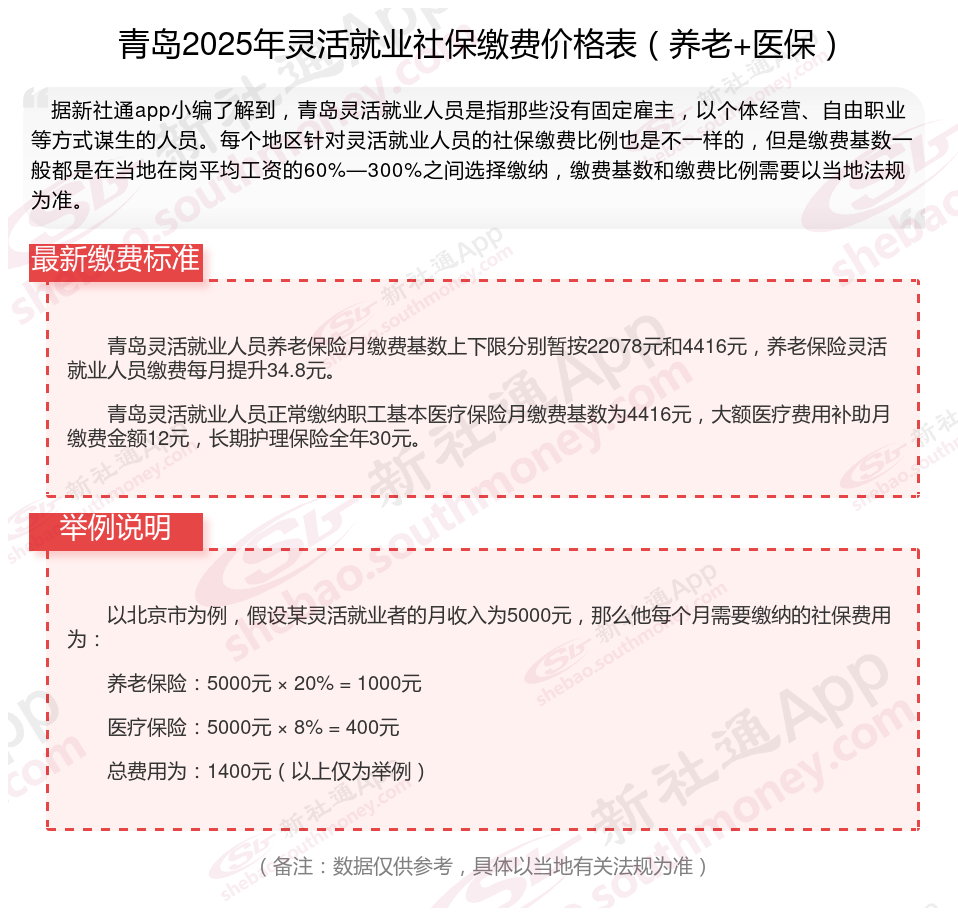 随着经济社会的不断发展,灵活就业群体日益壮大,其社保缴费问题也愈发受到关注。接下来随社保君了解一下2025年青岛灵活就业人员社保交多少钱的详细内容。
