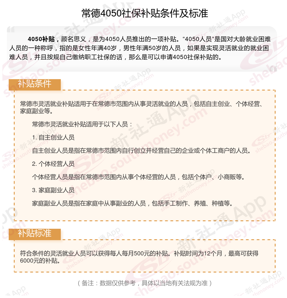 二、2025年常德4050社保补贴标准及条件,最新如下: