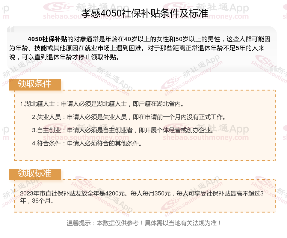 二、2025年孝感4050社保补贴标准是多少,最新4050社保补贴领取条件来了