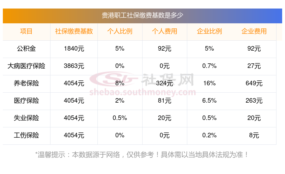 贵港的社保缴费情况,依据2025年最新的缴费标准,我们可以详细地进行如下说明。这些标准是根据新社通app-社保缴费查询工具提供的数据整理得出的: