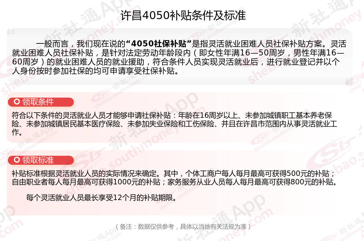以上就是许昌4050灵活就业社保补贴的相关内容,欢迎关注新社通/下载新社通APP了解更多五险一金专业资讯。