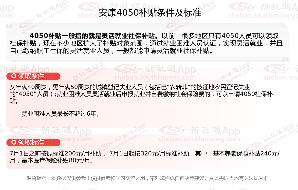 二、2025年安康4050社保补贴标准及条件,最新如下:
