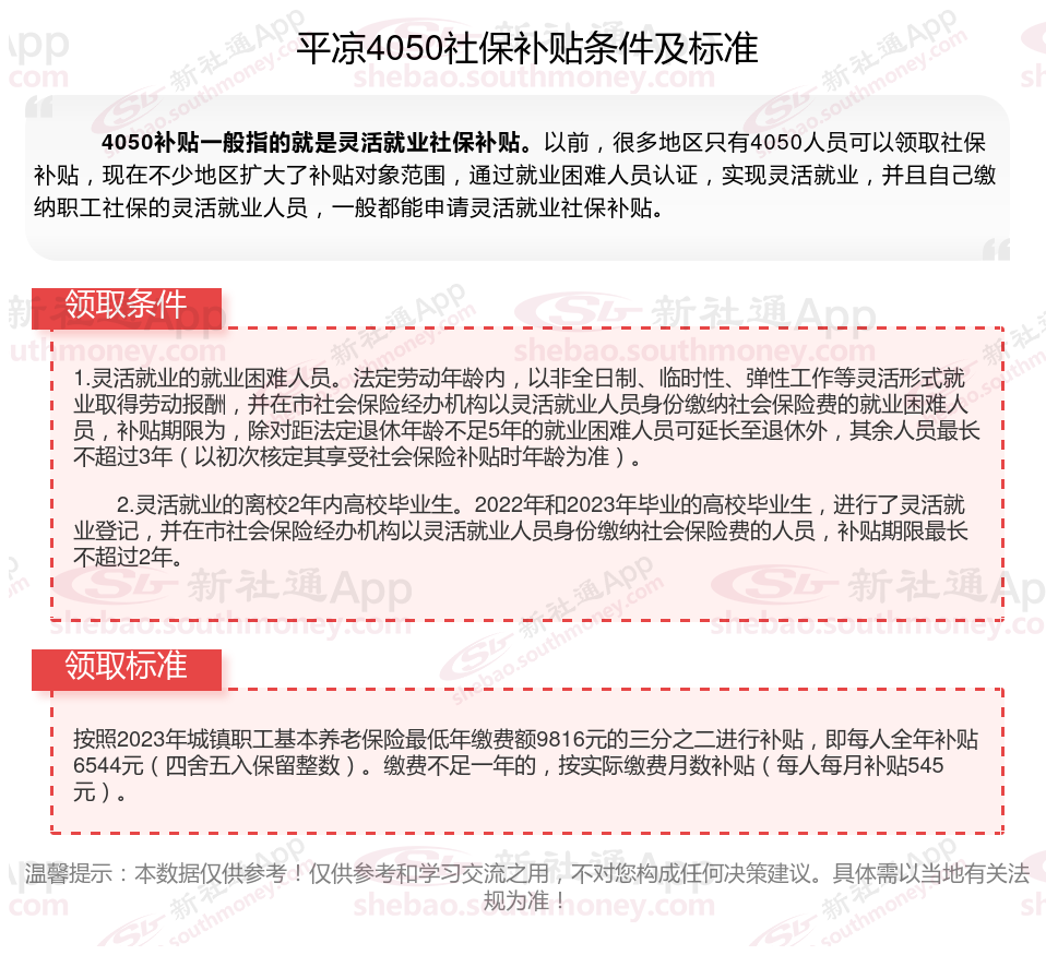 二、平凉4050社保补贴标准及条件2025年,最新如下