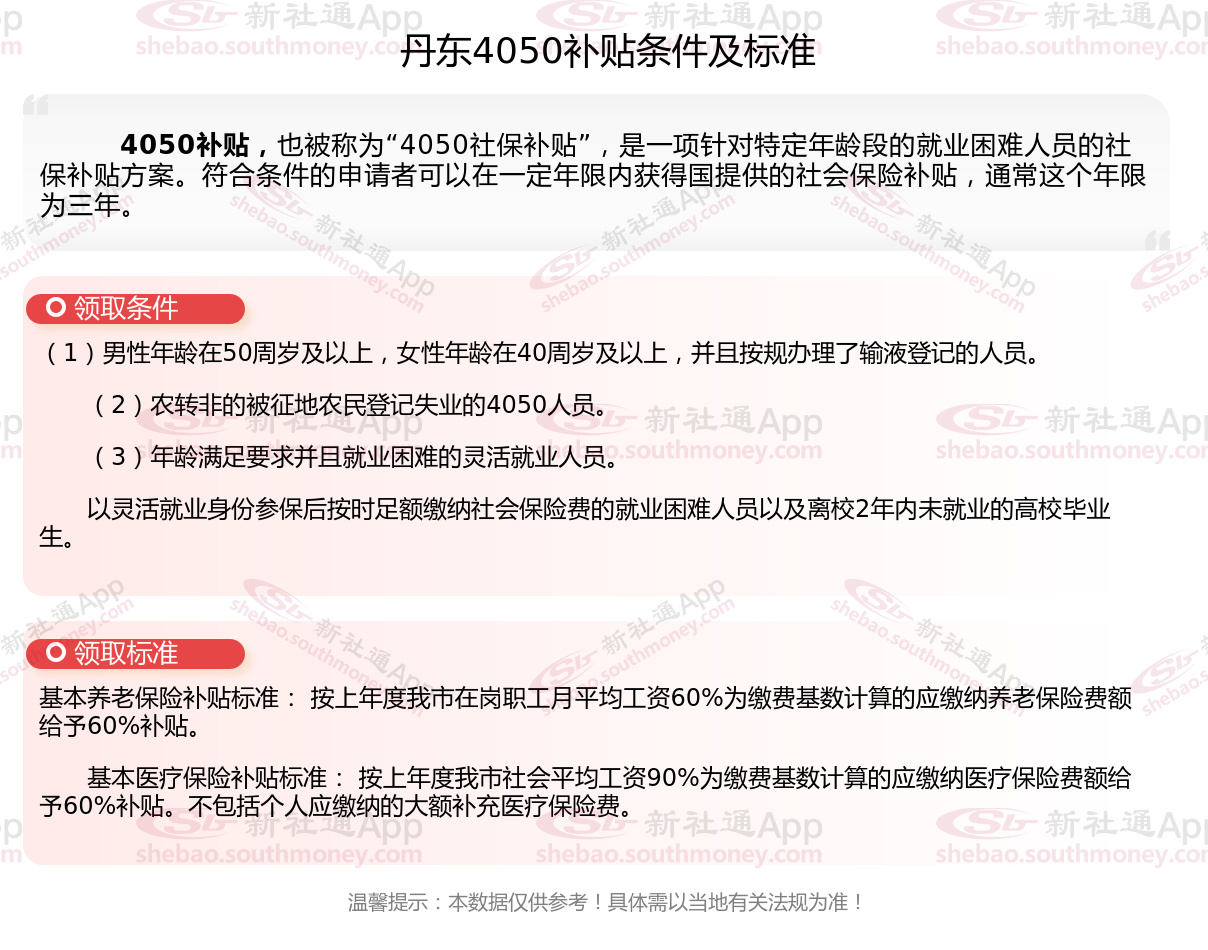 2025丹东灵活就业4050社保补贴是一项面向特定年龄段的就业困难人群的社会保险补贴。