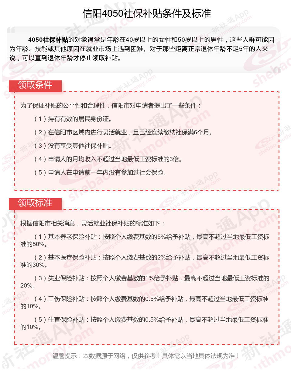 一、2023-2024年信阳4050社保补贴标准及条件,最新如下