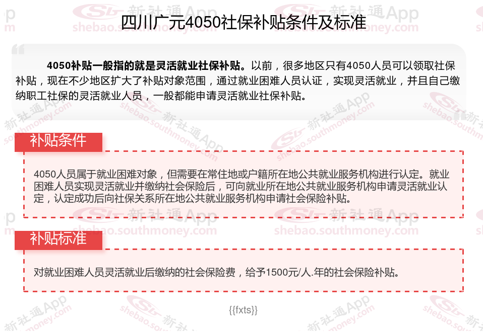 2025四川广元灵活就业4050社保补贴是一项面向特定年龄段的就业困难人群的社会保险补贴。