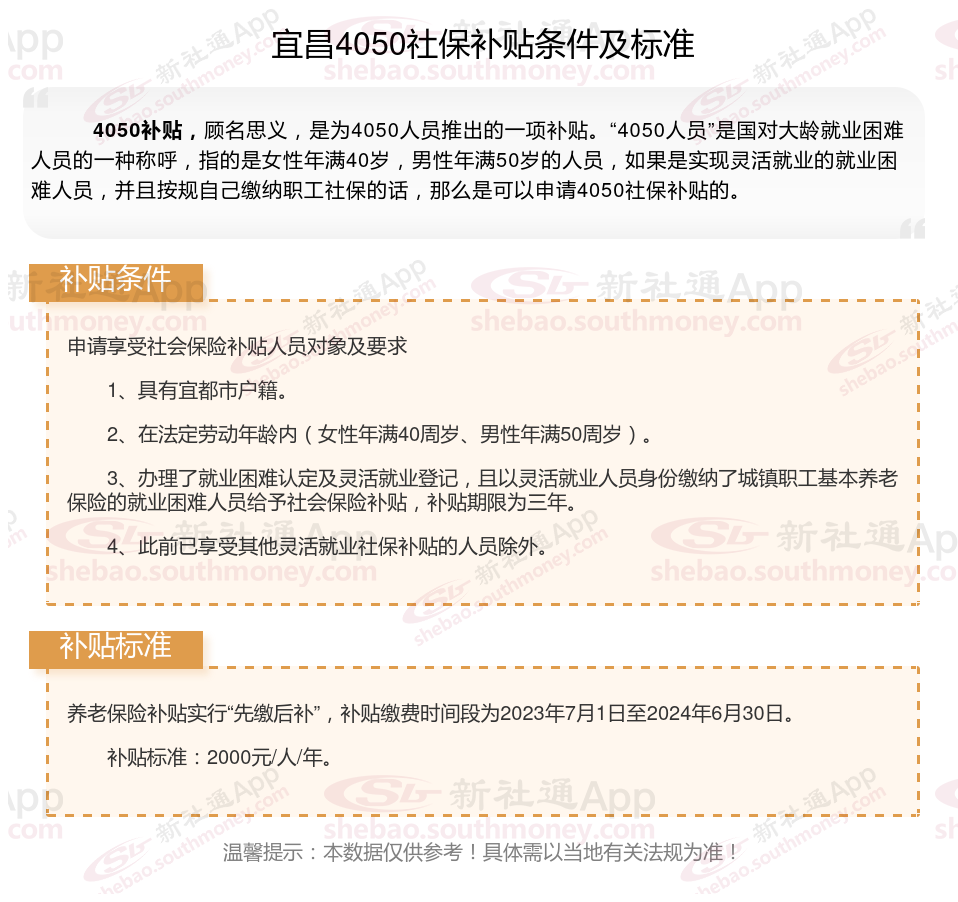 2025宜昌4050补贴主要针对的是年龄在40岁以上的女性和50岁以上的男性,这些人群通常因为年龄较大而面临就业困难。