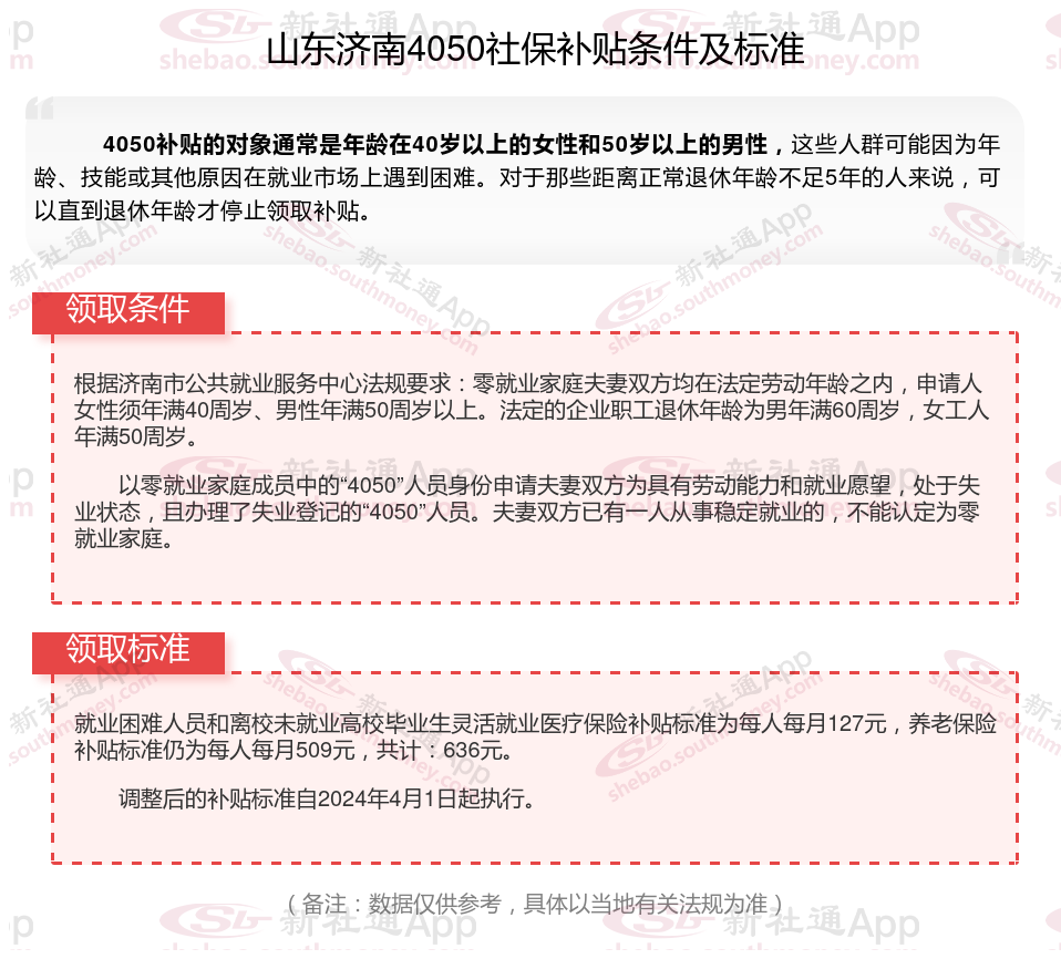 二、2025年山东济南4050社保补贴标准及条件,最新如下: