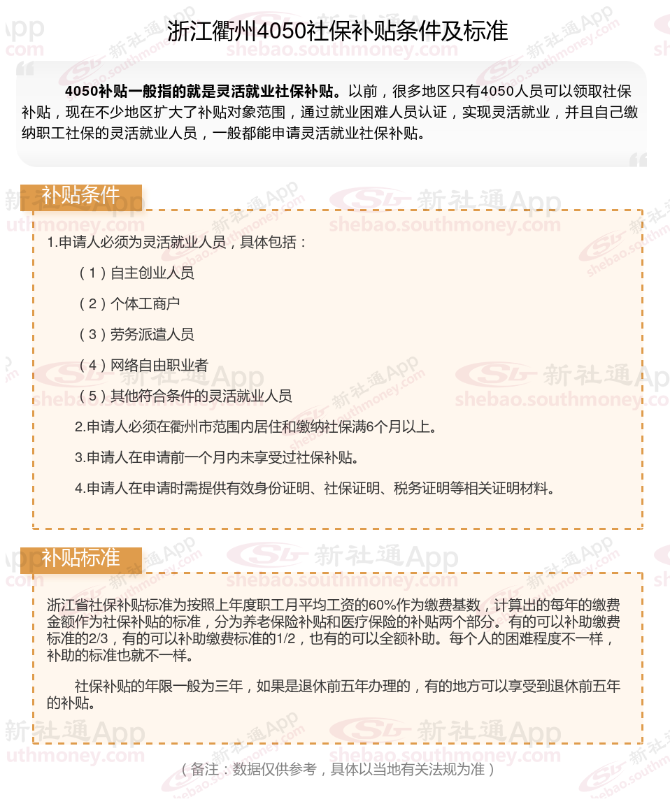 一、2025年浙江衢州4050社保补贴标准及条件来了