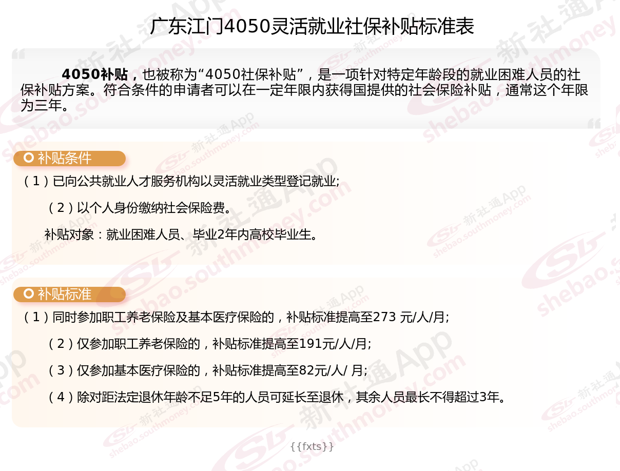 二、2025年广东江门4050社保补贴标准是多少,最新4050社保补贴领取条件来了