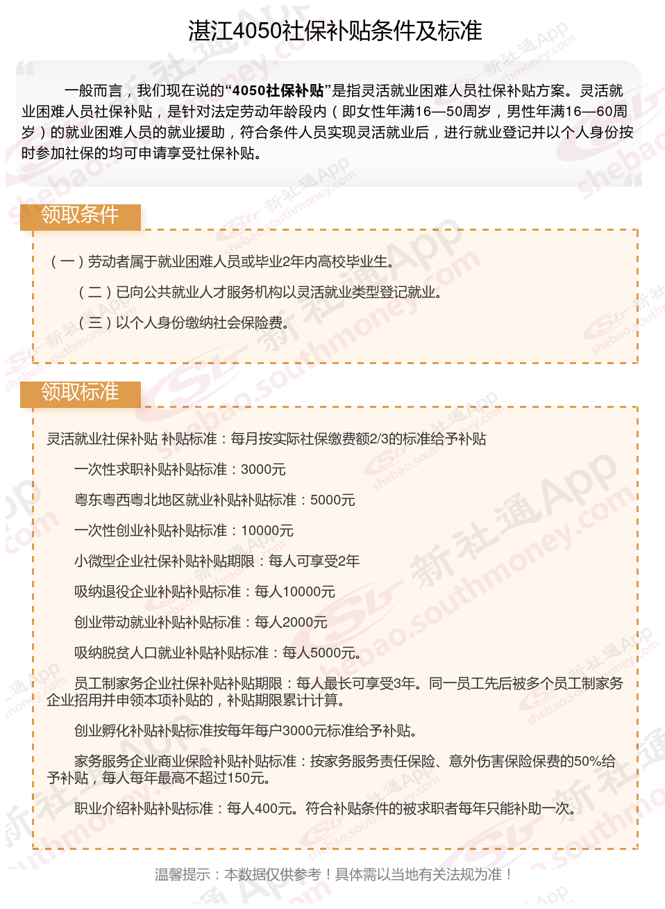 二、湛江灵活就业4050社保补贴标准2025年(4050社保条件是什么)