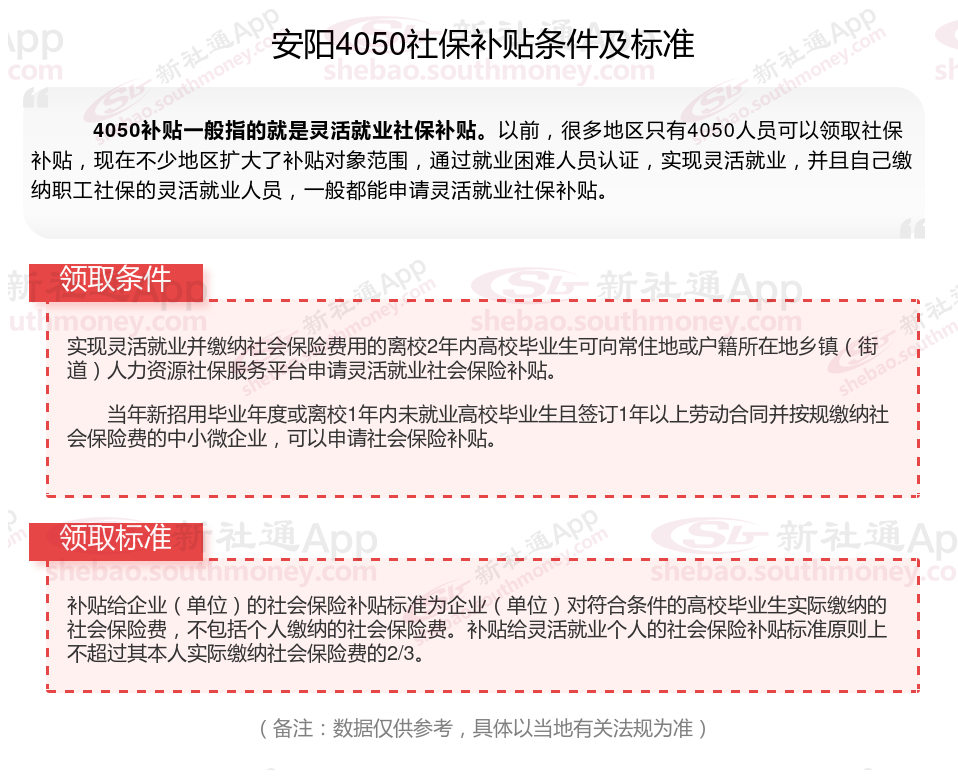 二、安阳4050社保补贴标准及条件2025年,最新如下