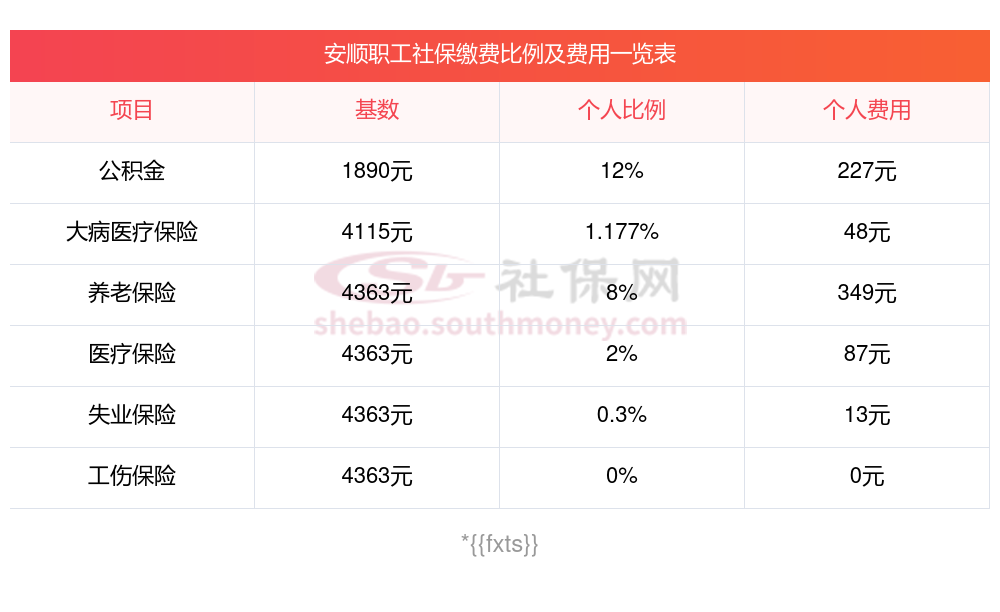 2025年安顺社保缴费多少钱?社保要缴够多少年可以退休?下表是2024-2025年安顺社保费用明细参考,新社通app-社保缴费查询工具提供的最新数据如下: