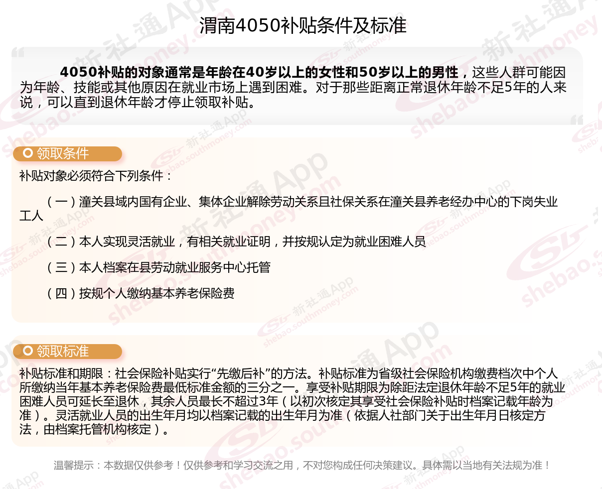 二、2025年渭南4050社保补贴标准及条件,最新如下: