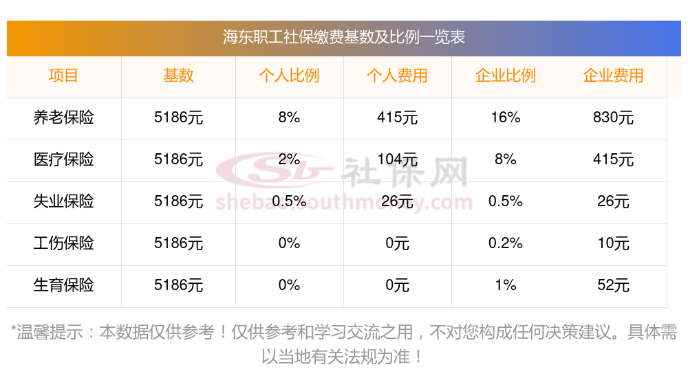 2025年海东社保缴费多少钱?下表是2024-2025年海东社保费用明细参考,新社通app-社保缴费查询工具提供的最新数据如下: