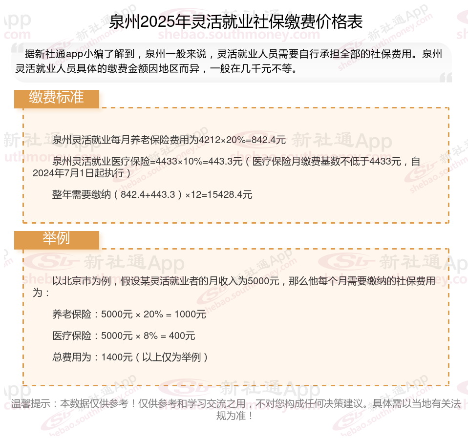 三、泉州2025年灵活就业社保缴费基数及比例最新消息