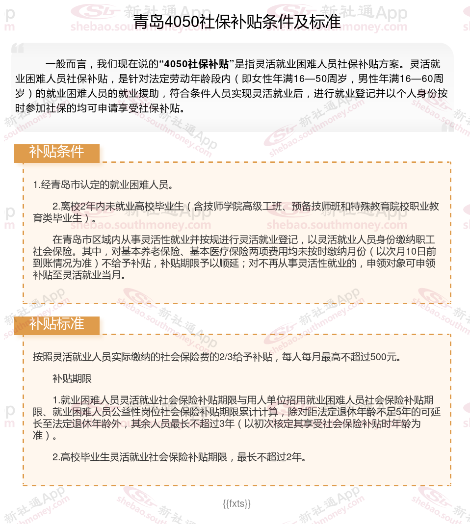 二、2025年青岛4050社保补贴标准(青岛4050灵活就业人员补贴标准是多少钱?青岛2025年4050补贴新规能领多少钱?)