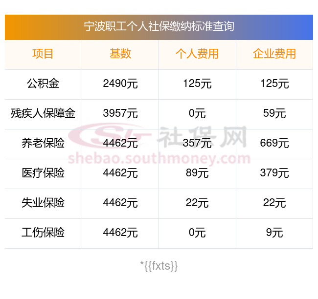 2025年社保缴费价目表,下面和社保网小编一起来了解下2024-2025年宁波最低配社保费用明细参考,新社通app-社保缴费查询工具提供的最新数据如下: