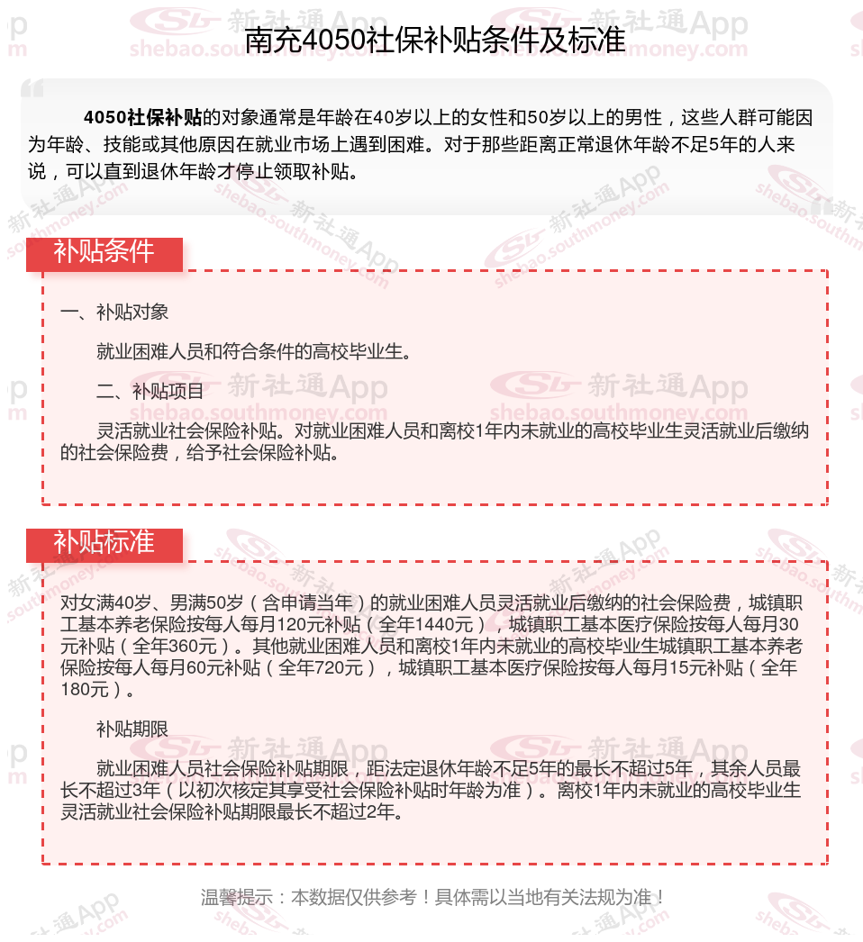 2025南充灵活就业4050社保补贴是一项面向特定年龄段的就业困难人群的社会保险补贴。