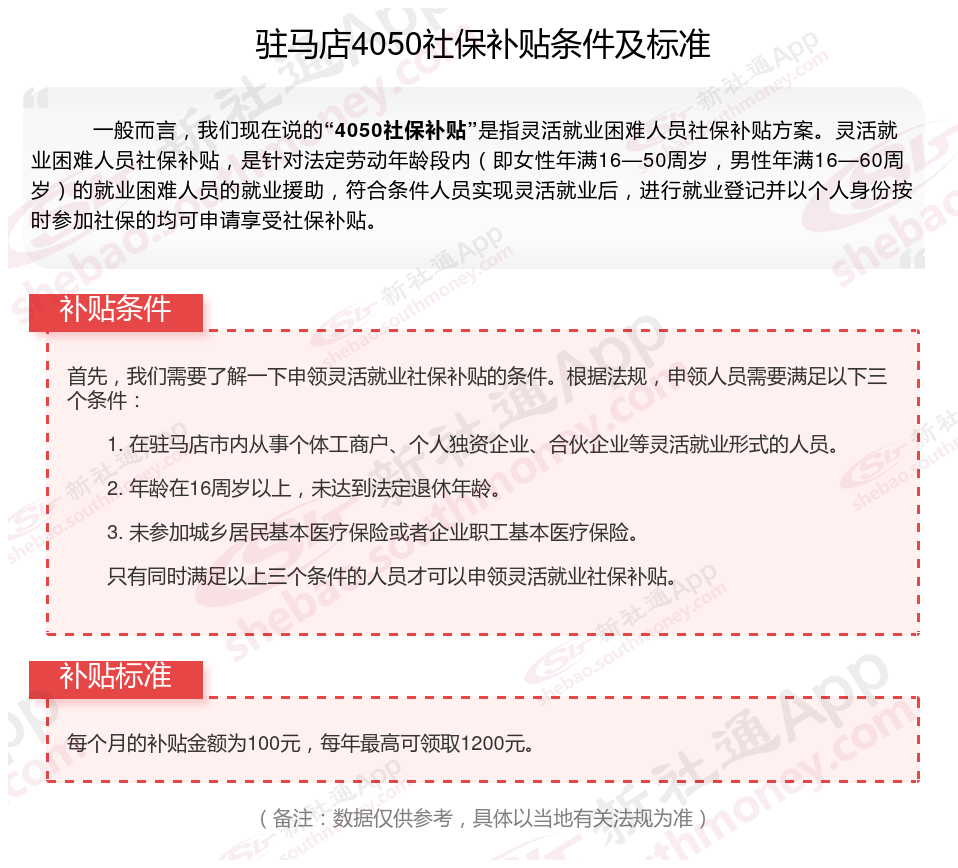 一、2025年驻马店4050社保补贴标准是怎么样的,附领取条件