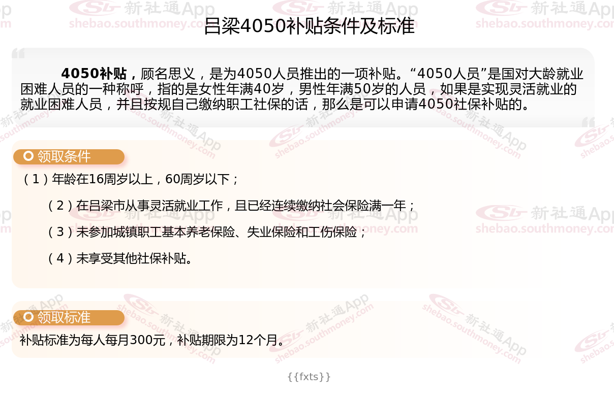 2025吕梁灵活就业4050社保补贴是一项面向特定年龄段的就业困难人群的社会保险补贴。
